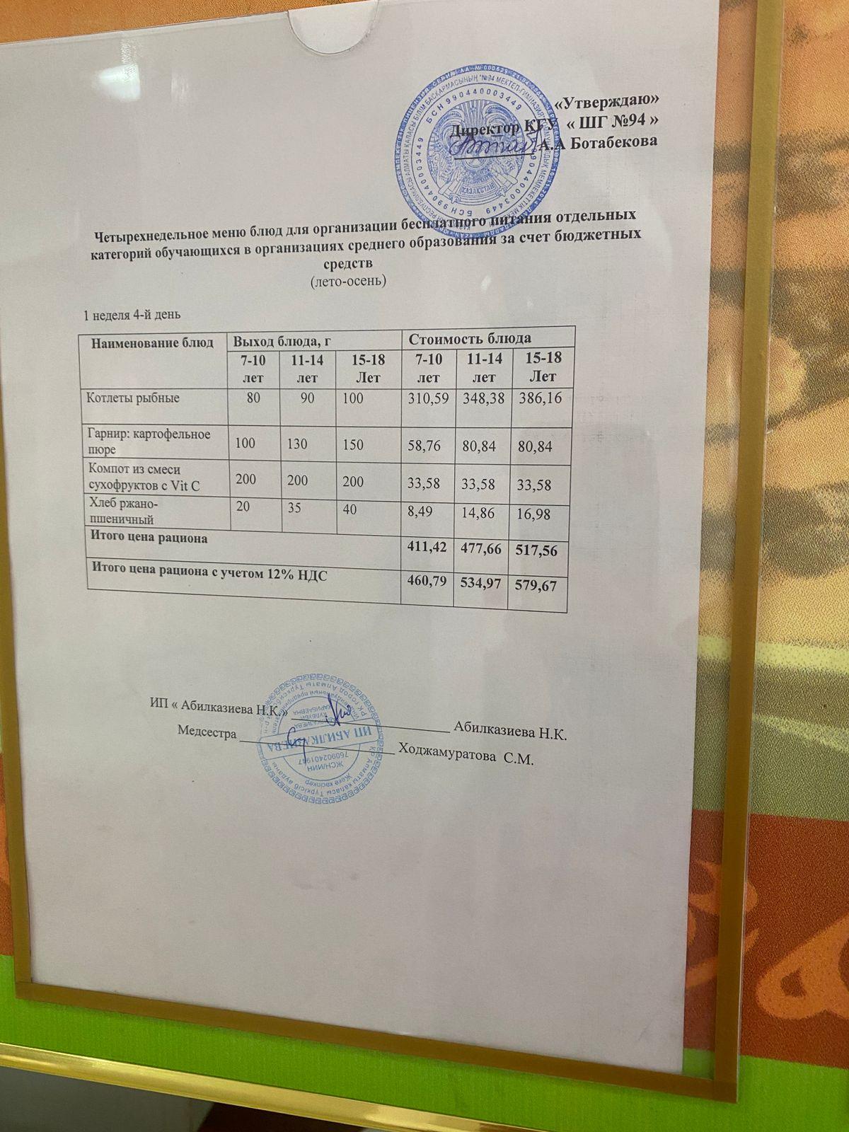 Ас мәзірі 2024-2025 оқу жылы