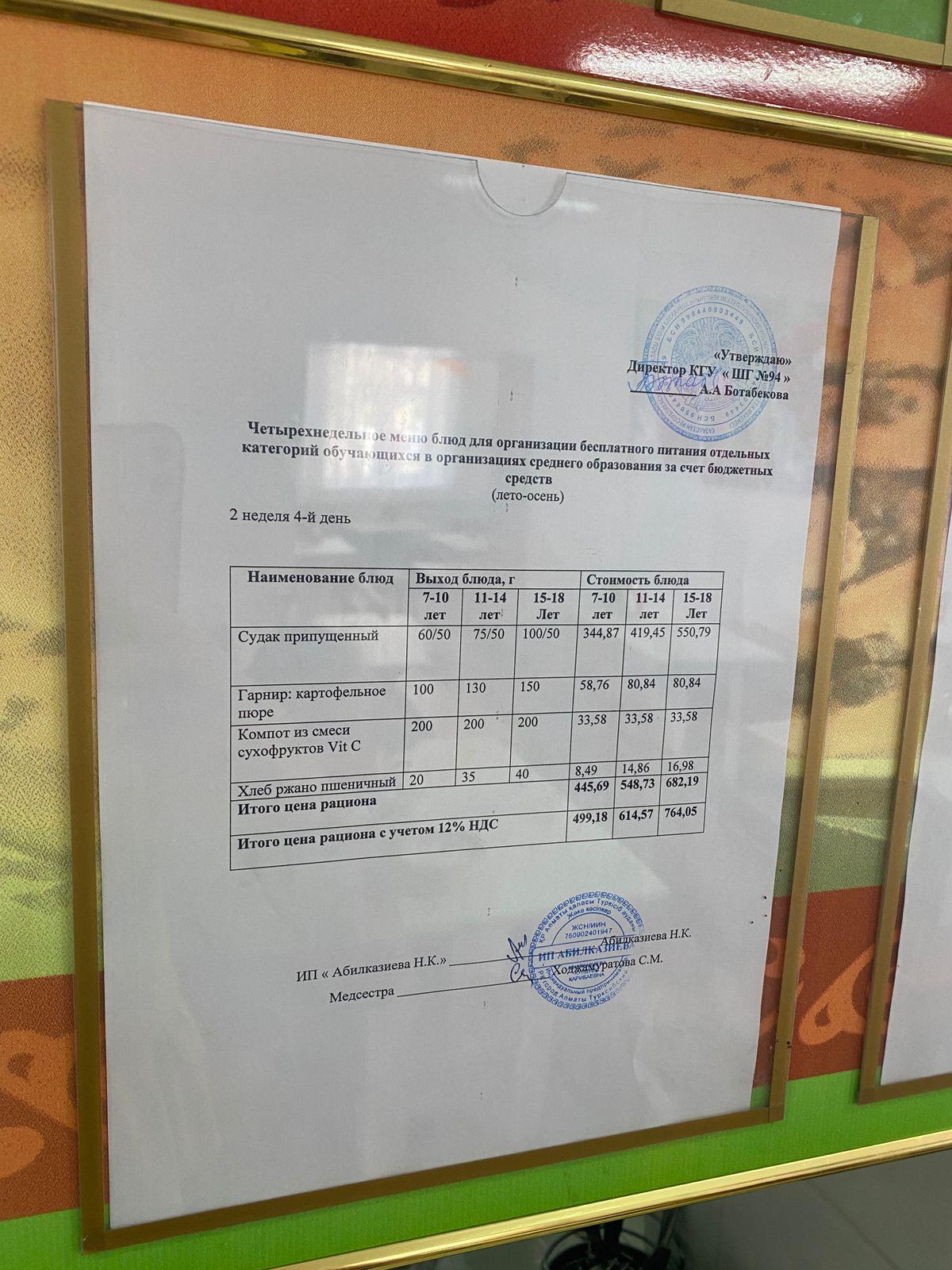 Ас мәзірі 2024-2025 оқу жылы