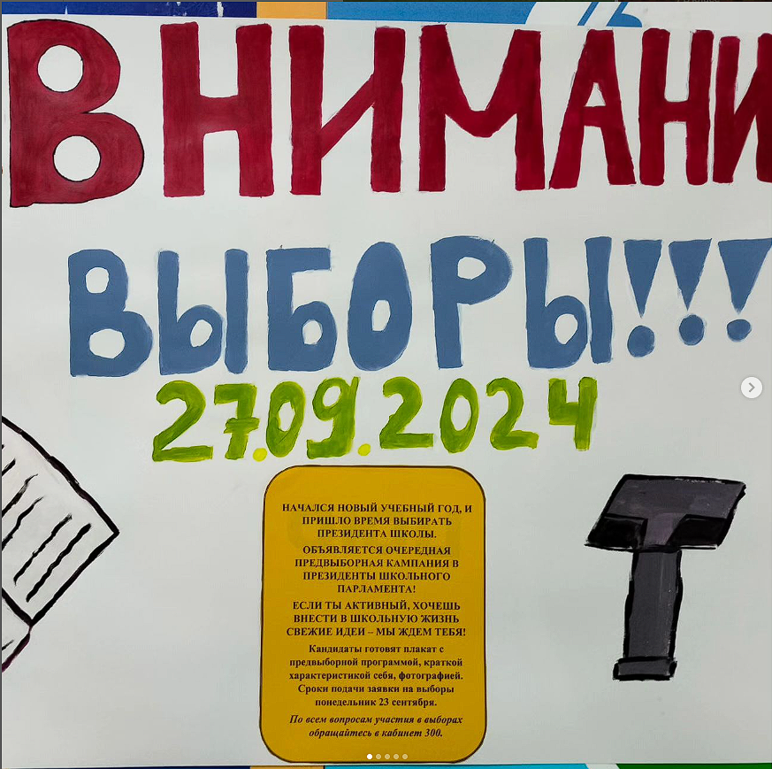 Сайлау науқаны басталды! Биыл үш адам Мейірхан Нұриман, Ерболат Батырхан және Ерболат Дәуренбеков өтініш берді. Мектеп парламентінің Президенттігіне үміткерлердің әрқайсысы өз бағдарламаларын ұсынды. Сайлау 27 Қыркүйек жұмада өтеді
