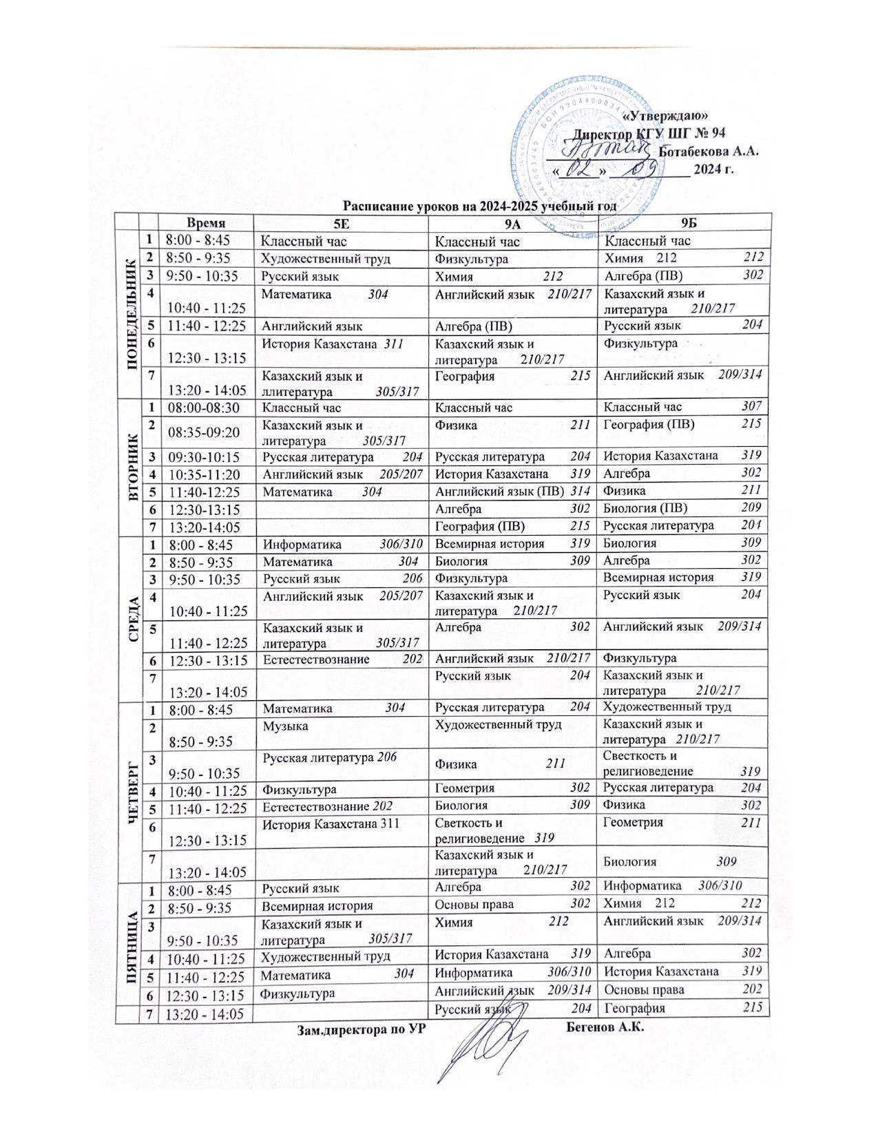 02 қыркүйек 2024 0 1 2 3 4 5 2024-2025 оқу жылына арналған сабақ кестесі. 2024-2025 оқу жылына арналған сабақ кестесі.