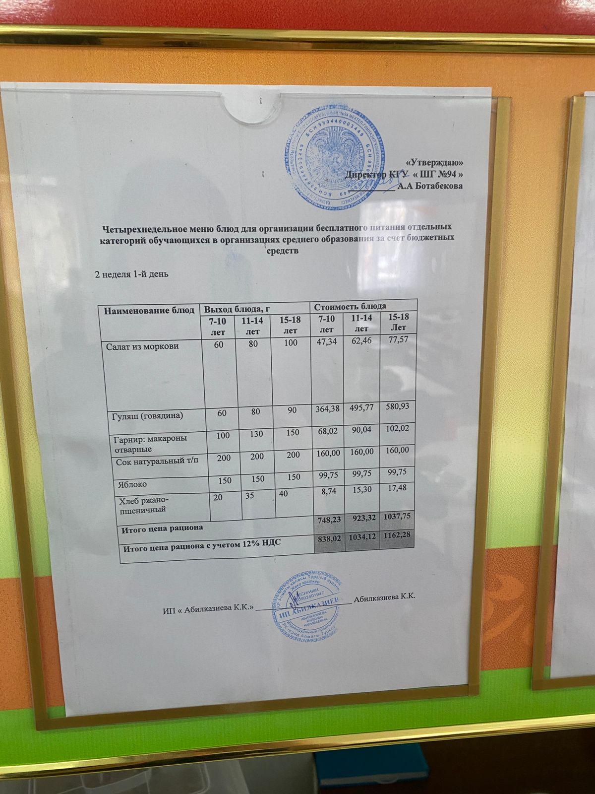 Мәзір/Меню 2 жұма/неделя 1 күн/день