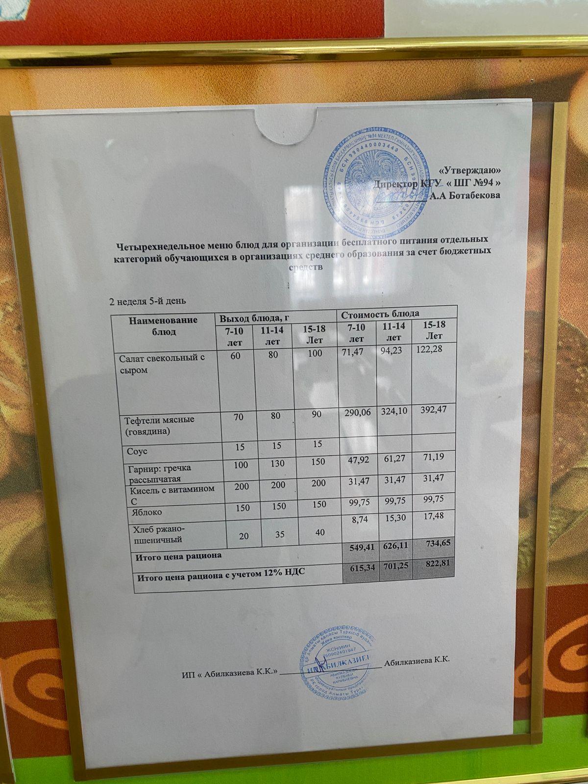 Ас мәзірі 2024-2025 оқу жылы