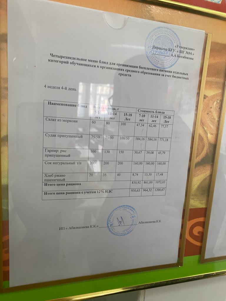 Мәзір/Меню 4 жұма/неделя 4 күн/день