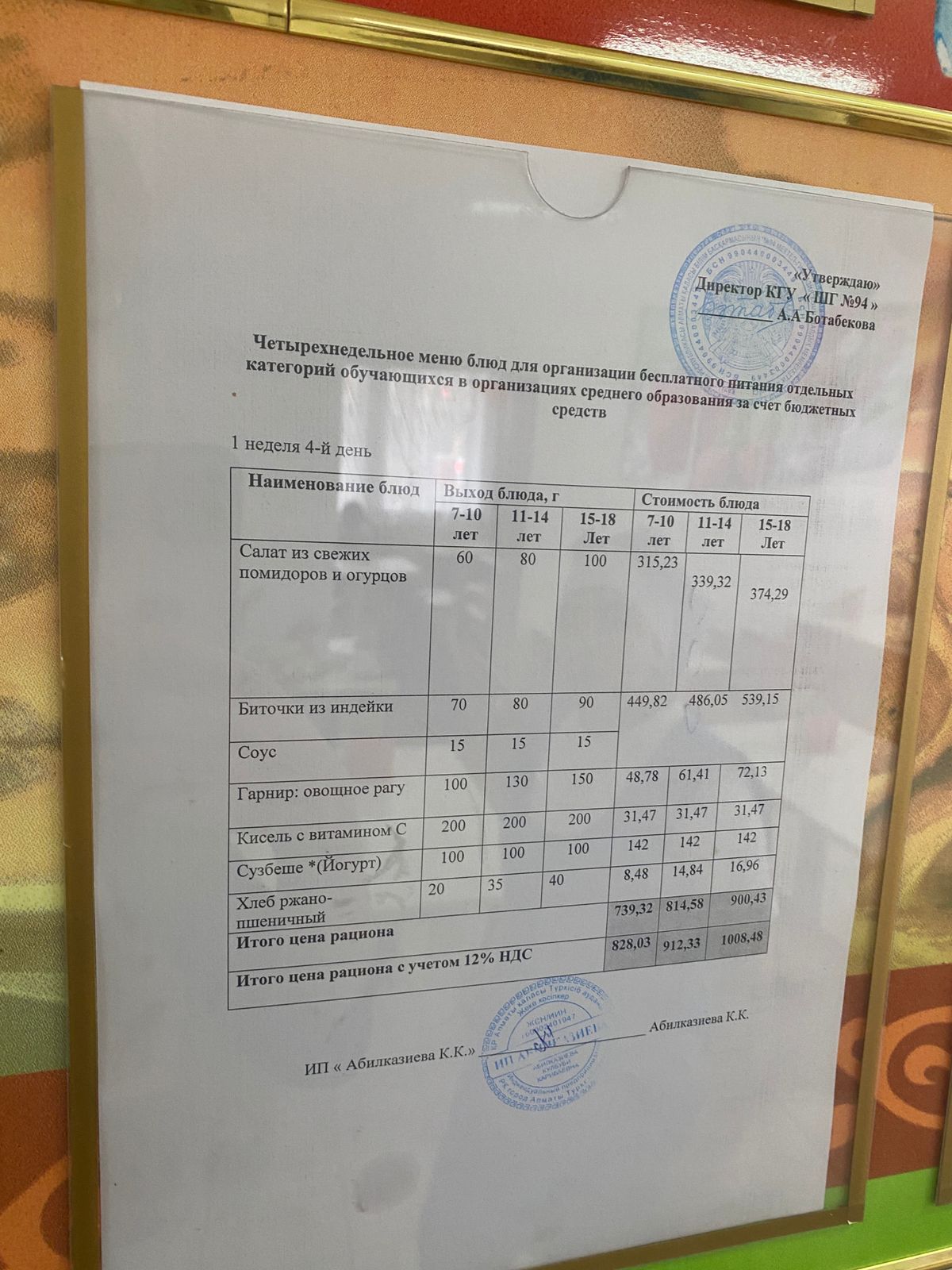 Мәзір/Меню 1 жұма/неделя 4 күн/день