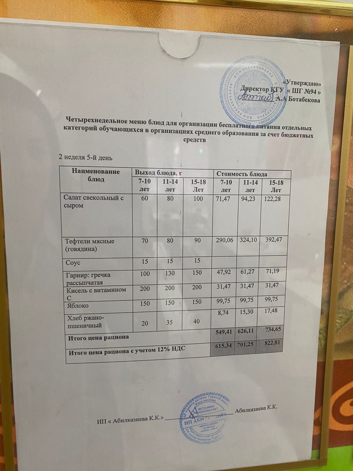 Мәзір/Меню 3 жұма/неделя 5 күн/день