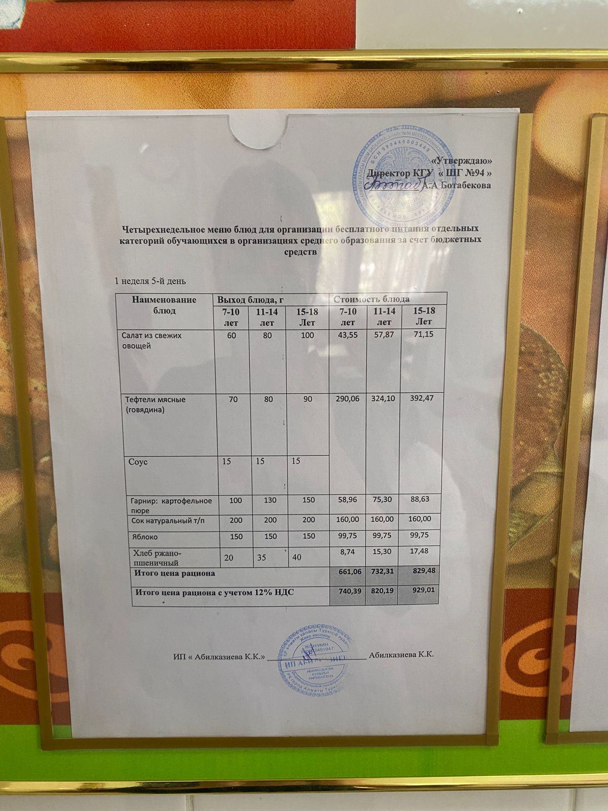 Мәзір/Меню 3 жұма/неделя 5 күн/день