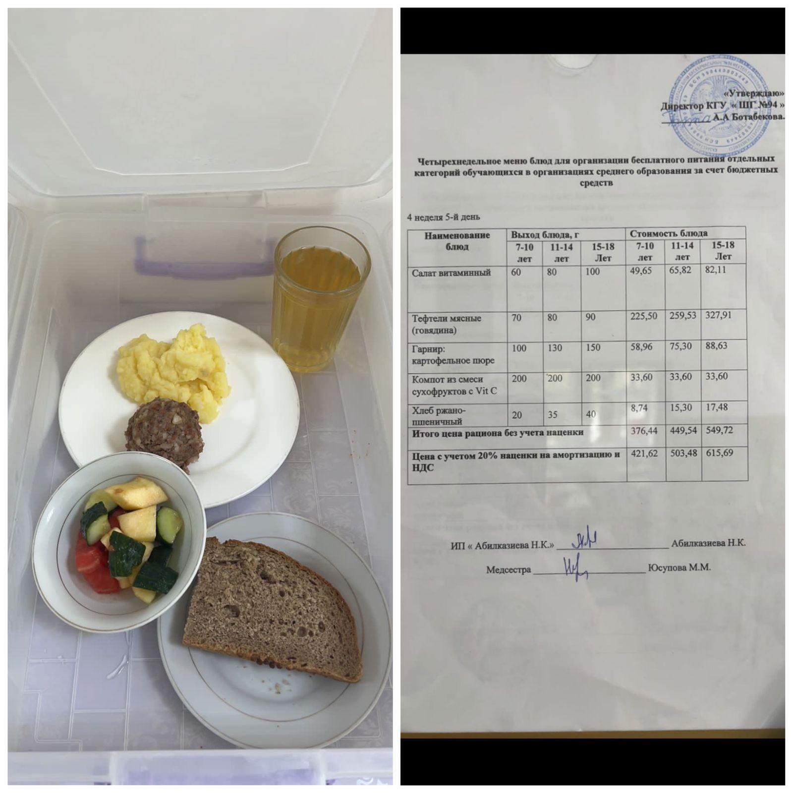 01.09.2023 ж. Ас мәзірі / Меню