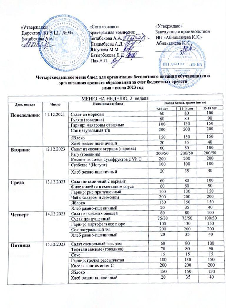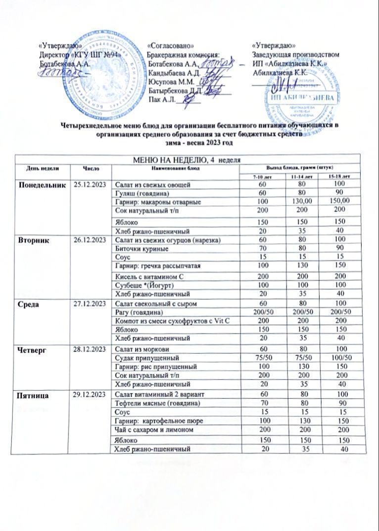 04 желтоқсан 2023 0 1 2 3 4 5 Төрт апталық ас мәзірі 04.12.2023-29.12.2023 / Четырехнедельное меню блюд 04.12.2023-29.12.2023