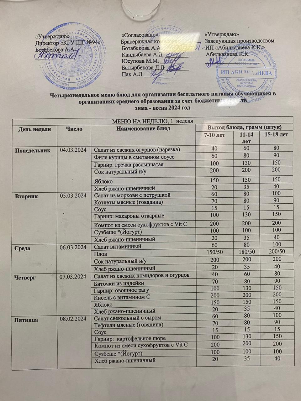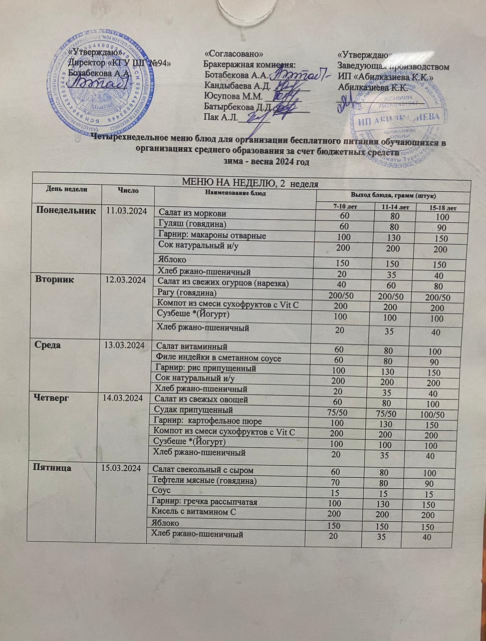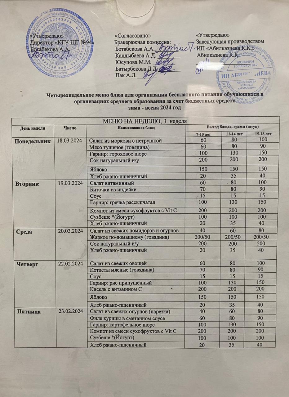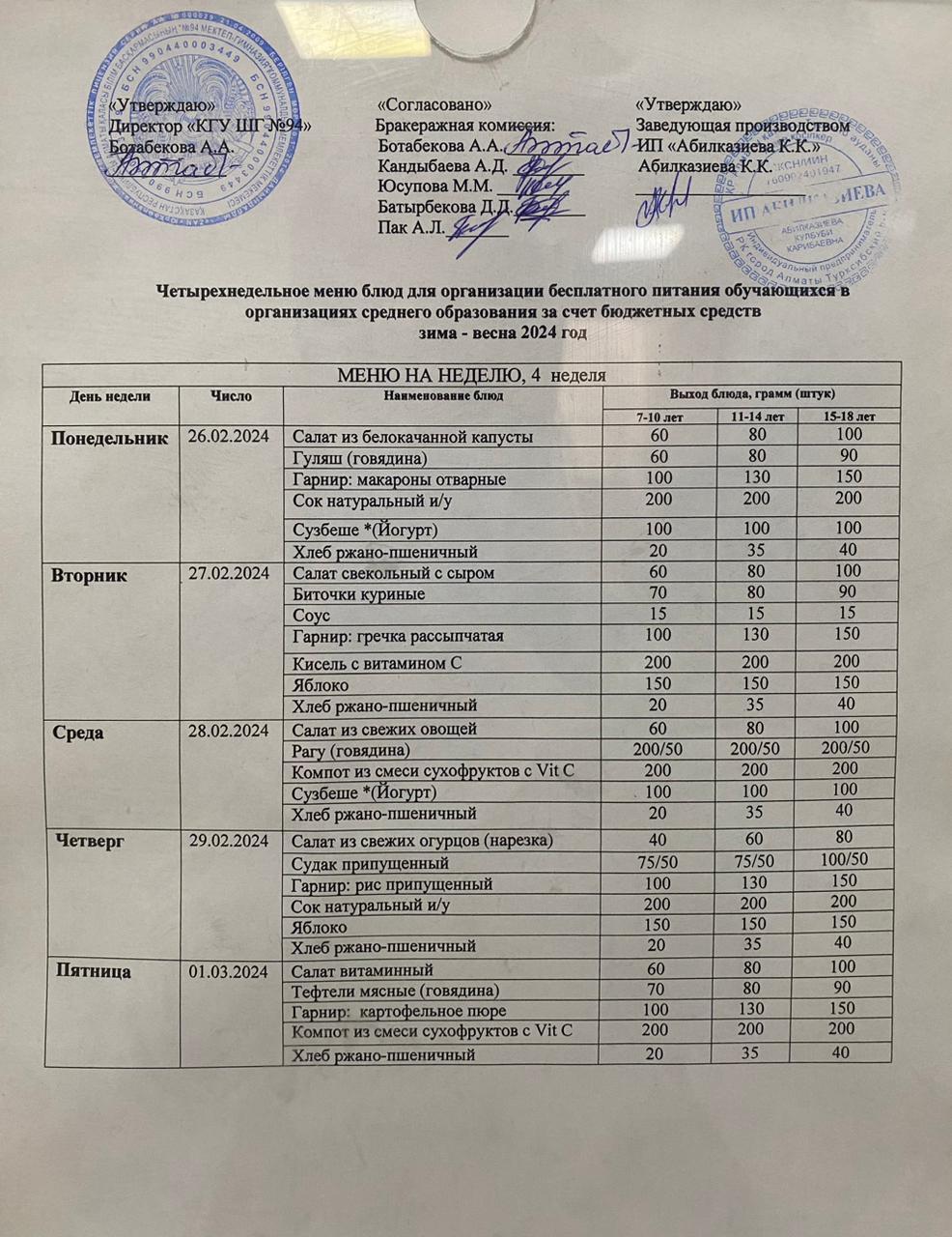 22 ақпан 2024 0 1 2 3 4 5 Төрт апталық ас мәзірі 22.02.2024-15.03.2024 / Четырехнедельное меню блюд 22.02.2024-15.03.2024