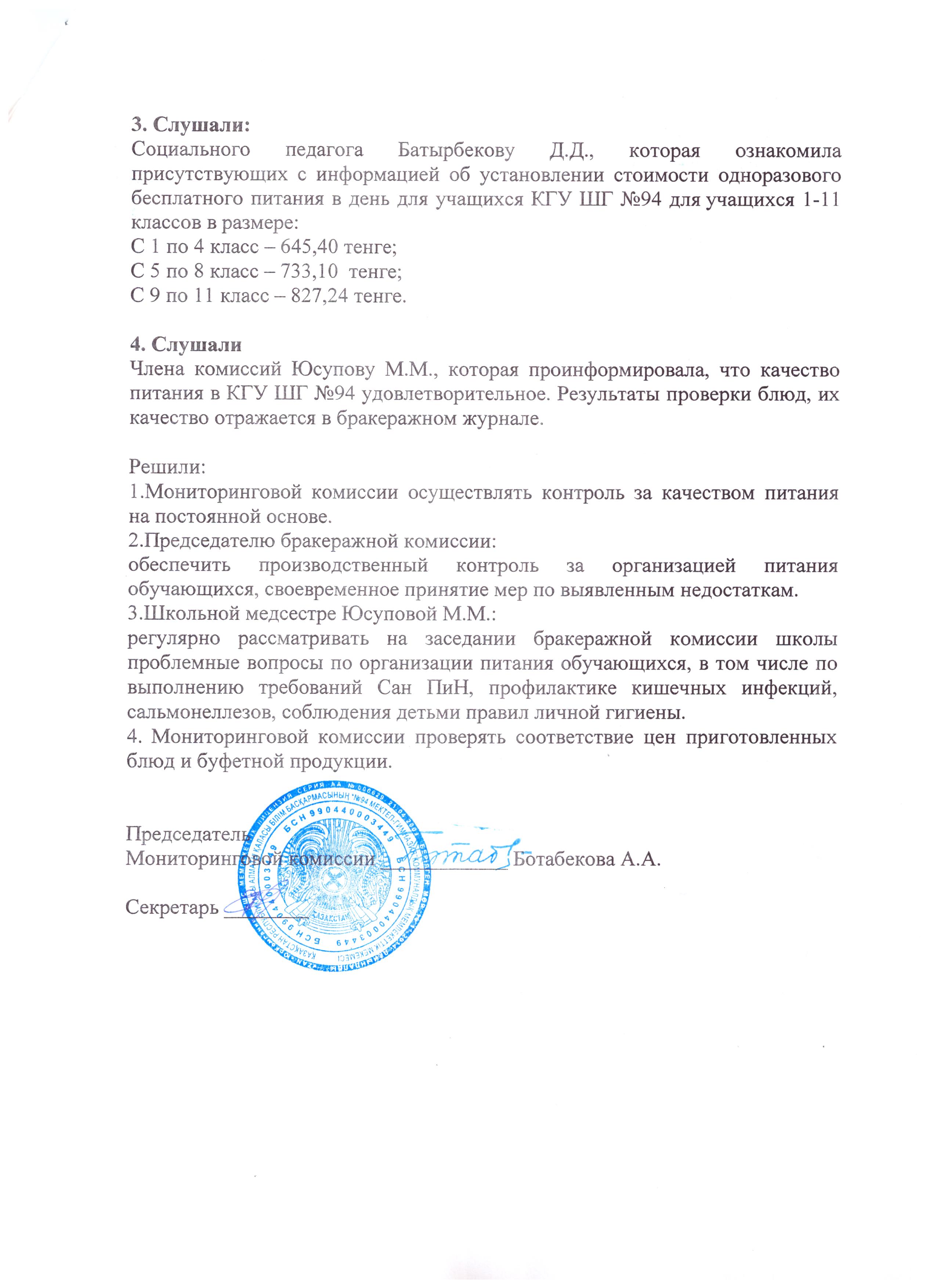 03 қыркүйек 2024 0 1 2 3 4 5 Тамақтану сапасы жөніндегі мониторингтік комиссияның №1 хаттамасы / Протокол №1 мониторинговой комиссии по качеству питания