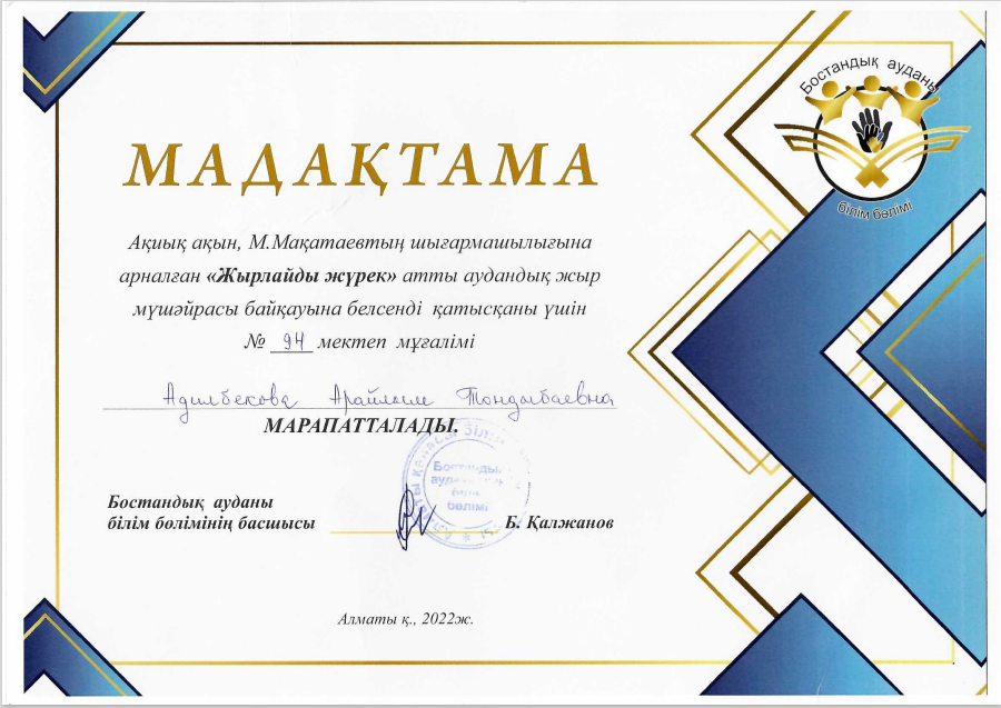 02 маусым 2022 0 1 2 3 4 5 Адилбекова Арайлым Тондыбаевна. Адилбекова Арайлым Тондыбаевна. Теги: Адилбекова Арайлым Тондыбаевна.